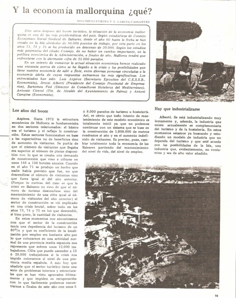 Y la economía mallorquina ¿qué? 17 junio, 19778 mayo, 2011 / xaviercassanyes Publicat a la Revista Cort, 10-17 de juny, 1976 Compartir Email a link to a friend (Se abre en una ventana nueva) Correo electrónico Compartir en WhatsApp (Se abre en una ventana nueva) WhatsApp TweetMás Compartir en Reddit (Se abre en una ventana nueva) Reddit Compartir en TumblrPocket Compartir en Telegram (Se abre en una ventana nueva) Telegram Me gusta Cargando... Relacionado