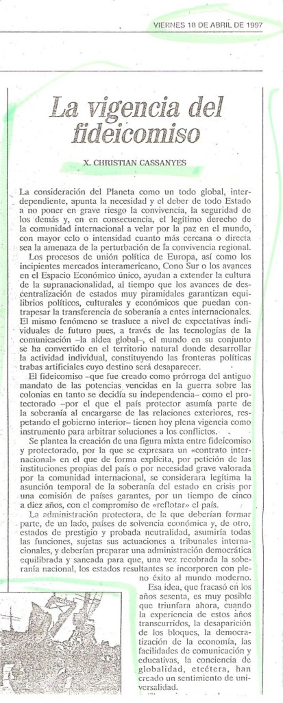 La vigencia del fideicomiso. 18 abril, 199715 mayo, 2011 / xaviercassanyes EL MUNDO BAL, 18-04-1997 Compartir Email a link to a friend (Se abre en una ventana nueva) Correo electrónico Compartir en WhatsApp (Se abre en una ventana nueva) WhatsApp TweetMás Compartir en Reddit (Se abre en una ventana nueva) Reddit Compartir en TumblrPocket Compartir en Telegram (Se abre en una ventana nueva) Telegram Me gusta Cargando... Relacionado
