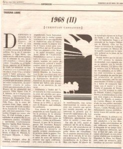 1968 (II) 26 abril, 199830 abril, 2011 / xaviercassanyes El MUNDO-BALEARES, 26-04-1998 Compartir Email a link to a friend (Se abre en una ventana nueva) Correo electrónico Compartir en WhatsApp (Se abre en una ventana nueva) WhatsApp TweetMás Compartir en Reddit (Se abre en una ventana nueva) Reddit Compartir en TumblrPocket Compartir en Telegram (Se abre en una ventana nueva) Telegram Me gusta Cargando... Relacionado