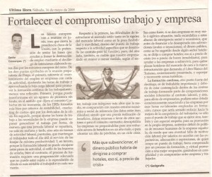 Fortalecer el compromiso trabajo y empresa. 16 mayo, 200930 abril, 2011 / xaviercassanyes Ultima Hora, 16-05-2009 Compartir Email a link to a friend (Se abre en una ventana nueva) Correo electrónico Compartir en WhatsApp (Se abre en una ventana nueva) WhatsApp TweetMás Compartir en Reddit (Se abre en una ventana nueva) Reddit Compartir en TumblrPocket Compartir en Telegram (Se abre en una ventana nueva) Telegram Me gusta Cargando... Relacionado
