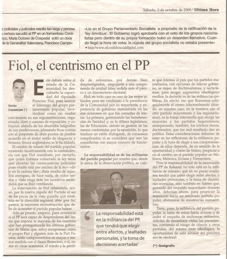 Fiol, el centrismo en el PP. 3 octubre, 200930 abril, 2011 / xaviercassanyes Ultima Hora, 03-10-2009 Compartir Email a link to a friend (Se abre en una ventana nueva) Correo electrónico Compartir en WhatsApp (Se abre en una ventana nueva) WhatsApp TweetMás Compartir en Reddit (Se abre en una ventana nueva) Reddit Compartir en TumblrPocket Compartir en Telegram (Se abre en una ventana nueva) Telegram Me gusta Cargando... Relacionado