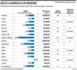 La agencia baja la calificación dos peldaños pero la prima, en lugar de subir ante la bajada de credibilidad baja. Y cuando se lee la argumentación resulta vemos margen de maniobra, para contrarrestar las expectativas negativas de la agencia, puesto que si conseguimos reducir el deficit de las CCAA, y parar el auemento de la deuda, vamos a conseguir liberar recursos para inversión.