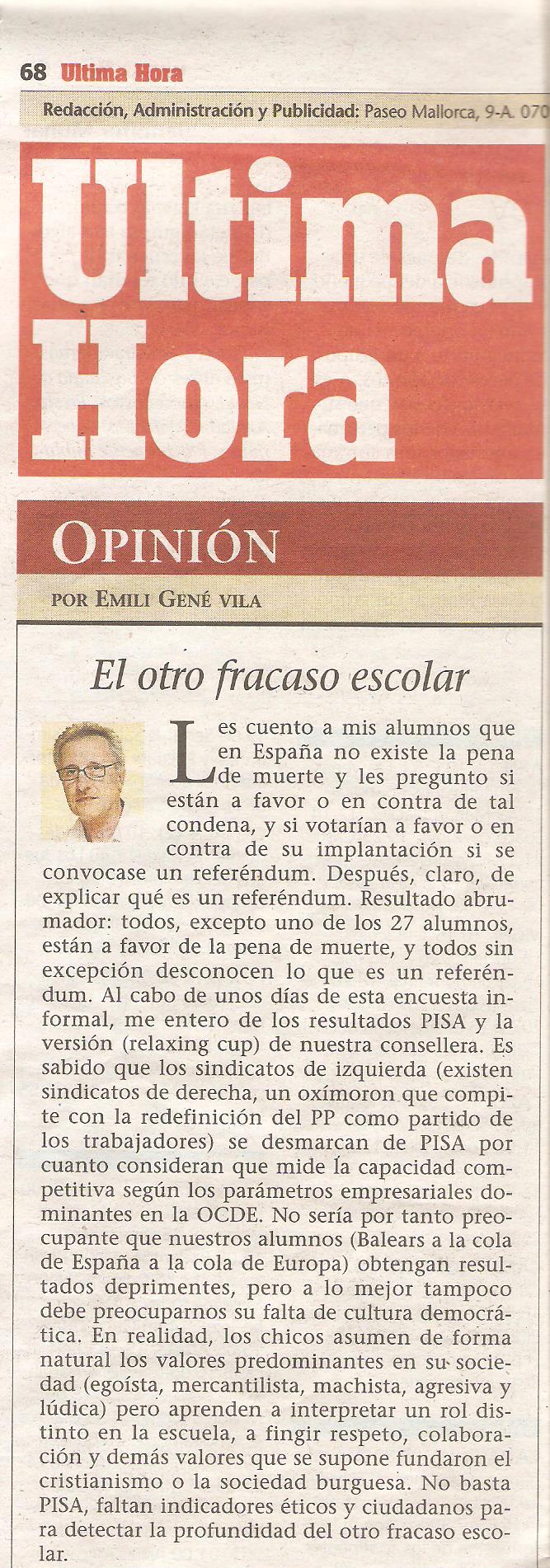 El otro fracaso escolar. 24 diciembre, 2013 / xaviercassanyes (Me ha parecido muy acertado el artículo publicado hoy de Emili Gene en UH.) Compartir Email a link to a friend (Se abre en una ventana nueva) Correo electrónico Compartir en WhatsApp (Se abre en una ventana nueva) WhatsApp TweetMás Compartir en Reddit (Se abre en una ventana nueva) Reddit Compartir en TumblrPocket Compartir en Telegram (Se abre en una ventana nueva) Telegram Me gusta Cargando... Relacionado