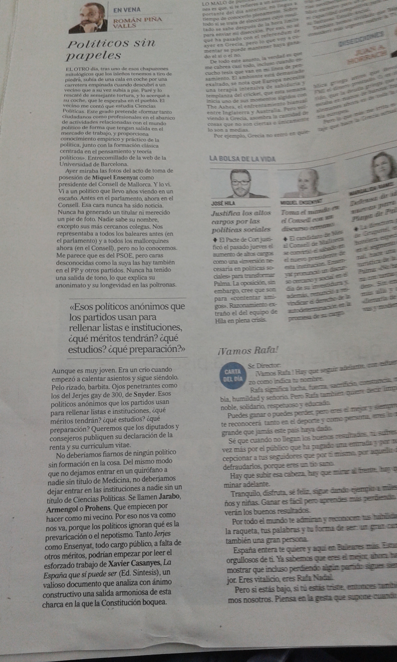 En la columna en el diario El Mundo-Baleares (de hoy, 6 de julio), Román Piña Valls hace referencia a mi libro. Se lo agradezco de todas todas.