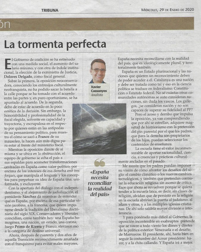 Mientras la oposición dimite de sí misma y se ubica en la obstrucción, el equipo de gobierno se echa el país a sus espaldas para acometer transformaciones centradas en España como valor político, por encima de los intereses de esa derecha “amb tres forques”, que manipula el lenguaje y los conceptos para perpetuar su idea de España una, uniformada, y excluyente.