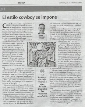 Lo relevante de la presidencia de Trump, a diferencia de las de Reagan o Busch hijo, es que su legado no está en el campo de las ideas económicas y sociales, o en el modo de afrontar las relaciones geoestratégicas, sino en que ha estandarizado hacer política desde un egocentrismo caprichoso que hace uso del poder sin limitaciones éticas o morales; a golpe de ocurrencia iluminada, sin mesura, y mirando de reojo las encuestas de popularidad entre sus votantes. Es el populismo en su estado puro.