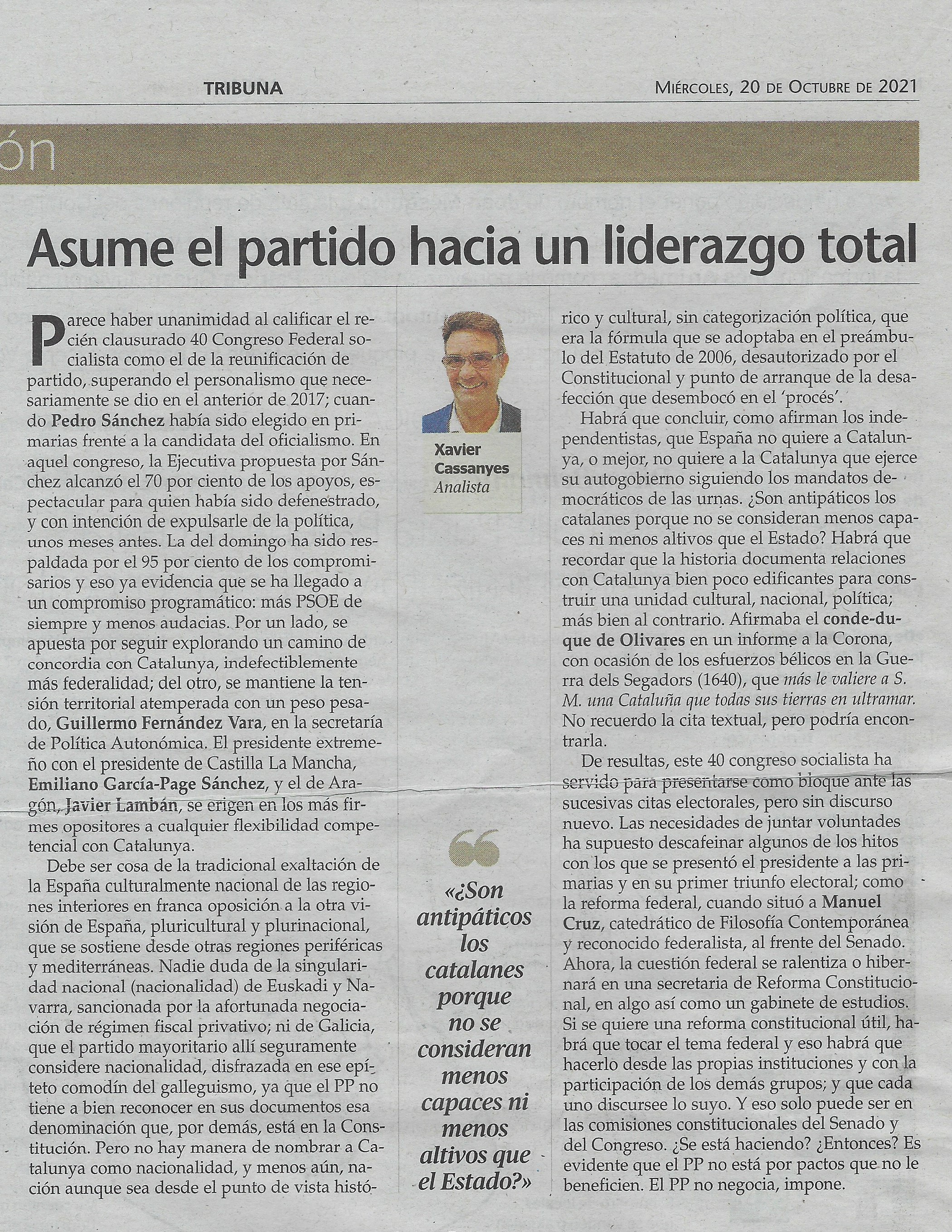 De resultas, este 40 congreso socialista ha servido para presentarse como bloque ante las sucesivas citas electorales, pero sin discurso nuevo. Las necesidades de juntar voluntades ha supuesto descafeinar algunos de los hitos con los que se presentó el presidente a las primarias y en su primer triunfo electoral; como la reforma federal, cuando situó a Manuel Cruz, catedrático de Filosofía Contemporánea y reconocido federalista, al frente del Senado.