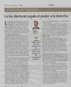 La ley electoral rergala el poder a la derecha,UH, 23.02.2022