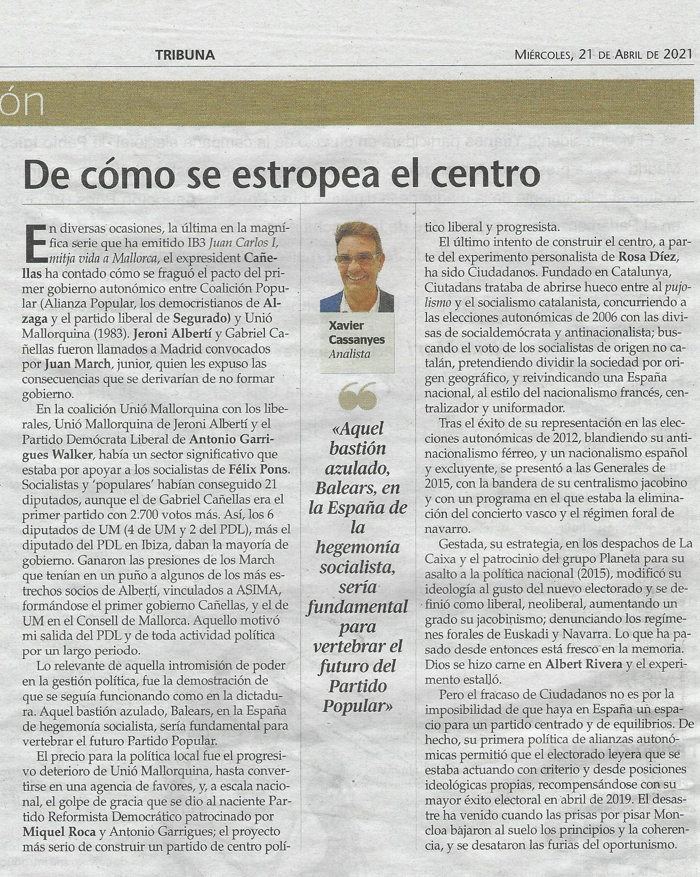 El precio para la política local fue el progresivo deterioro de Unió Mallorquina, hasta convertirse en una agencia de favores, y, a escala nacional, el golpe de gracia que se dio al naciente Partido Reformista Democrático patrocinado por Miquel Roca y Antonio Garrigues; el proyecto más serio de construir un partido de centro político liberal y progresista.