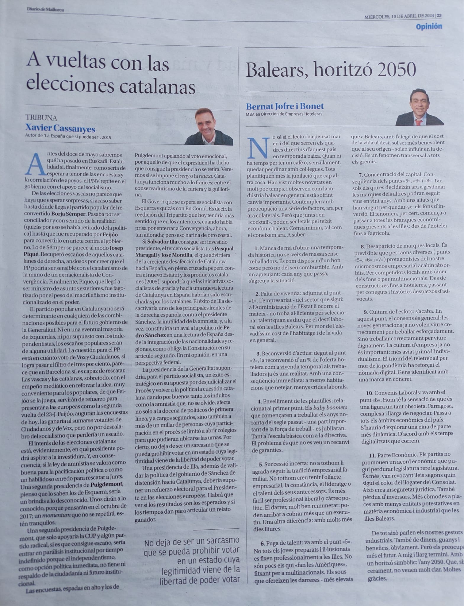 Una presidencia de Illa, además de validar la política del gobierno de Sánchez de distensión hacia Catalunya, debería suponer un refuerzo electoral para el Presidente en las elecciones europeas. Habrá que ver si los resultados son los esperados y si los tiempos dan para articular un relato ganador.