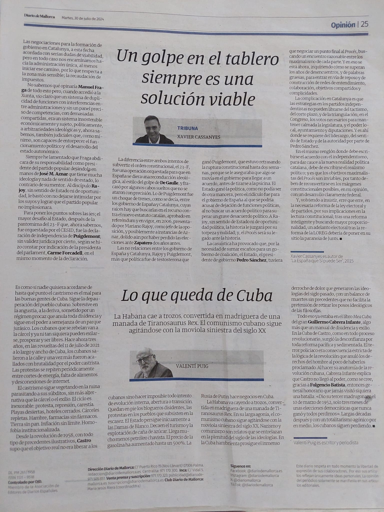 Y, volviendo a insistir, erre que erre, en la necesaria reforma de la ley electoral y de partidos, por sus implicaciones en la lectura constitucional; tras una reforma inteligente y buscando mayor proporcionalidad, un adelanto electoral reformada la LOREG debería de poner en su sitio la paranoia de Junts.