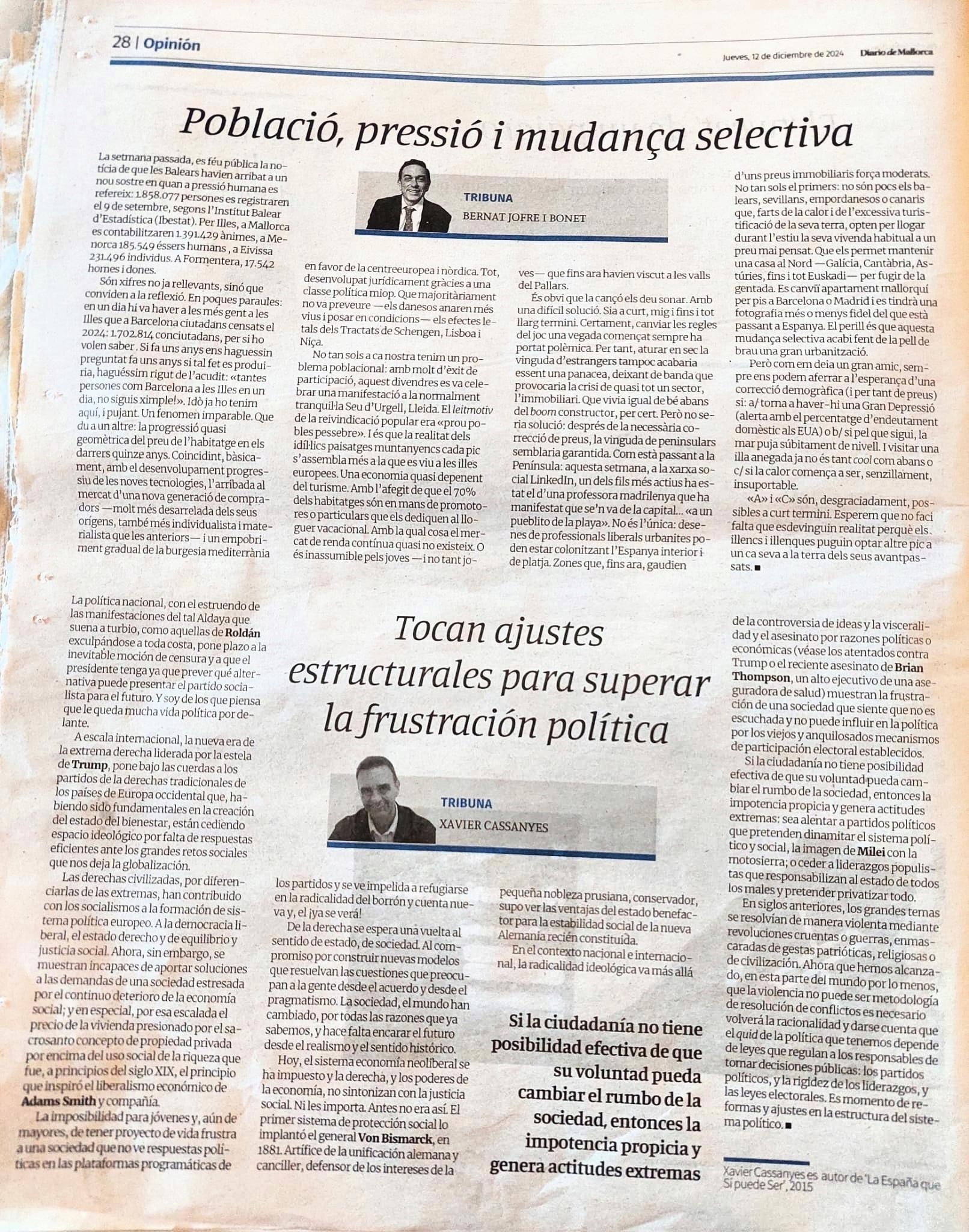 En un contexto nacional e internacional de radicalidad ideológica, en el que las posiciones extremas van más allá de la controversia de ideas y llega a la intolerancia, la visceralidad y el asesinato por razones políticas o económicas (véase los atentados contra Trump o el reciente asesinato de Brian Thompson, un alto ejecutivo de una aseguradora de salud) muestran la frustración de una sociedad que se siente incapaz de influir en la política desde la modestia de los mecanismos de participación electoral establecidos.