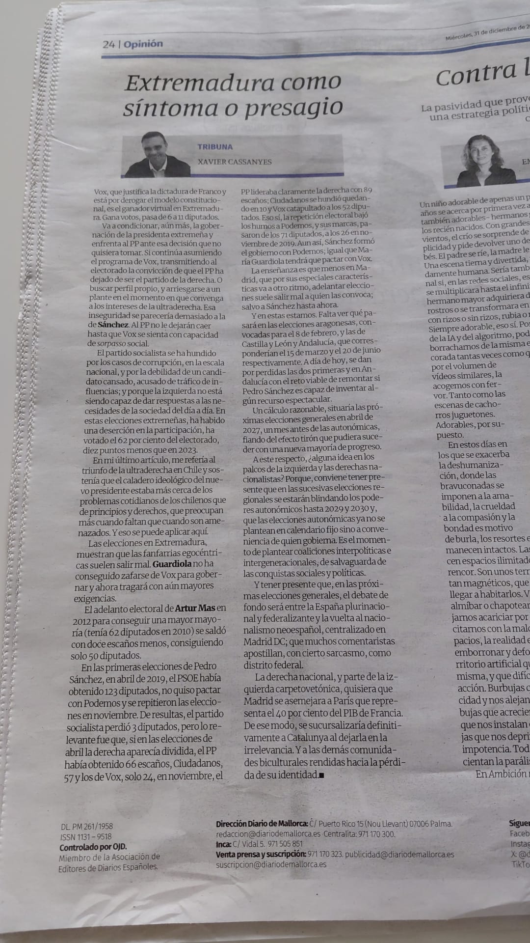 En mi último artículo, me refería al triunfo de la ultraderecha en Chile y sostenía que el caladero ideológico del nuevo presidente estaba más cerca de los problemas cotidianos de los chilenos que de principios y derechos, que preocupan más cuando faltan que cuando son amenazados. Y eso se puede aplicar aquí.