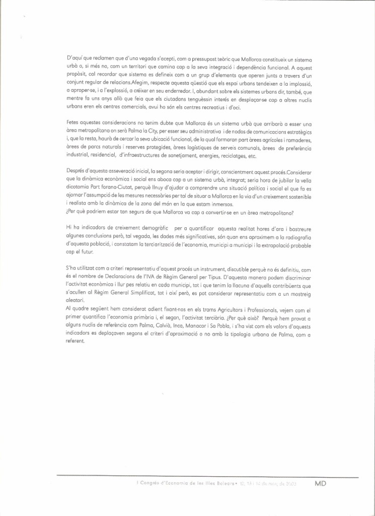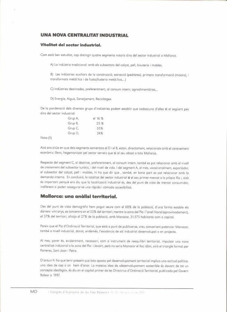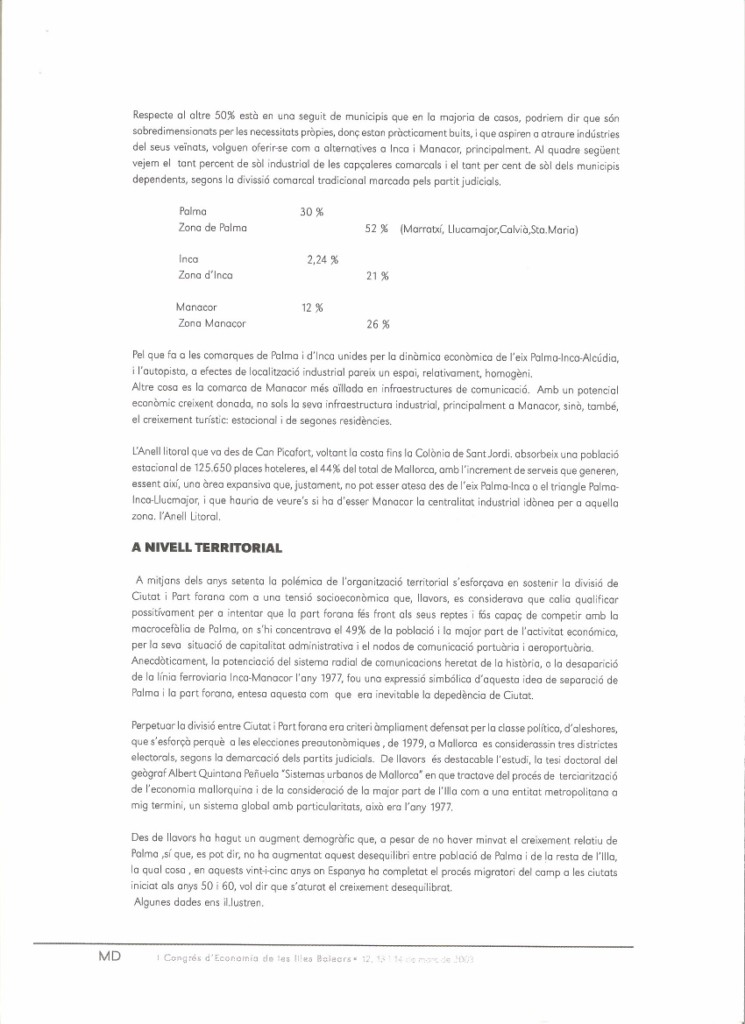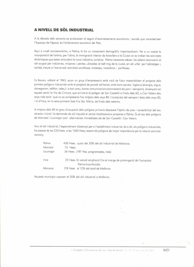 UNA NOVA CENTRALITAT INDUSTRIAL A MALLORCA. Comunicació al I Congrés d’Economia de les Illes Balears. Organitzat per la Conselleria d’Economia del Govern Balear. Palma, 2003.