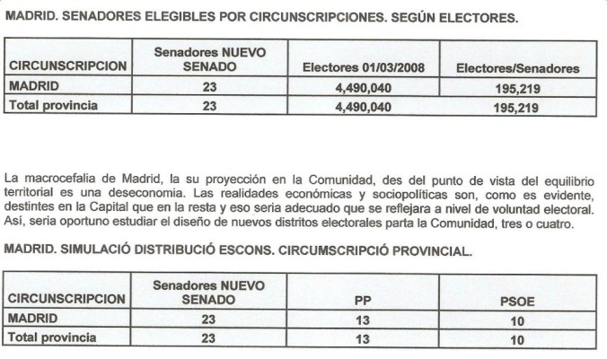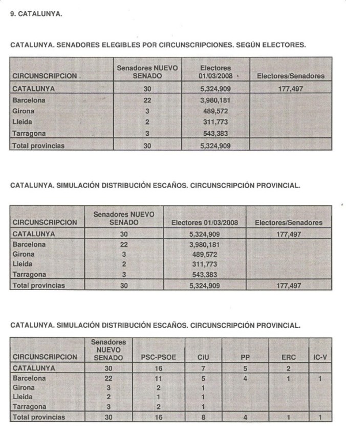 Como se ha dicho, en Catalunya se encargó por el Parlament un proyecto de ley electoral para las elecciones autonómicas que prevé nuevas circunscripciones (vegueries), por lo que se ha hecho, también, la extrapolación según éstas y se han sugerido dos nuevas agrupaciones, para el caso del Senado, por razones demográficas.