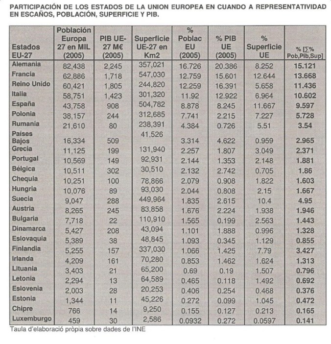 Eso nos lleva a una, primera, conclusión, la ponderación de los criterios de población, superficie y PIB, se ajustan mejor a la hora de fijar la representatividad política en el Parlamento Europeo