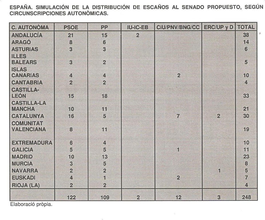 Por eso, a la hora de proponer una reforma política de hondo calado, como es la del Senado, es interesante analizar el histórico del comportamiento electoral en las últimas convocatorias, así como, en aras de alcanzar consensos y acuerdos progresivos que hagan posible la reforma, transmitir la convicción, objetivamente argumentable, que en la propuesta de reforma del Senado no habría opciones políticas beneficiadas más allá de ligeros ajustes, similares a los que se dan en cada convocatoria electoral.