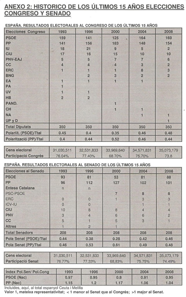 Como apuntaba al comienzo del estudio habría que realizar un ajuste importante de actualización, pues tras la la experiencia de la crisis ahora ya parecería asumible una reducción importante en el número de Senadores y, por tanto, en la distribución de los escaños. Sin embargo, me parece válido incluir las tablas a título indicativo y para visualizar que en la reforma planteada no se vería afectada globalmente las cuotas de representación política.