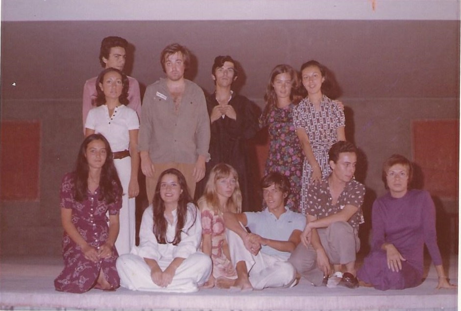 En la terraça de l’Auditòrium hi ha un teatret a l’aire lliure allà vàrem muntar una obra de teatre vanguardista que pens que era de creació conjunta del grup. En Jordi Llorens es va implicar dirigint-la. Aquí teniu el grup que la formava.