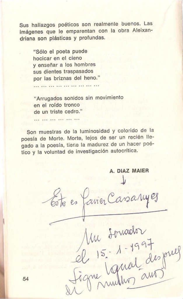 La introducción a los poemas de Rodolfo Morte. Años más tarde me escribió un agradecimiento. Gracias Rodolfo!