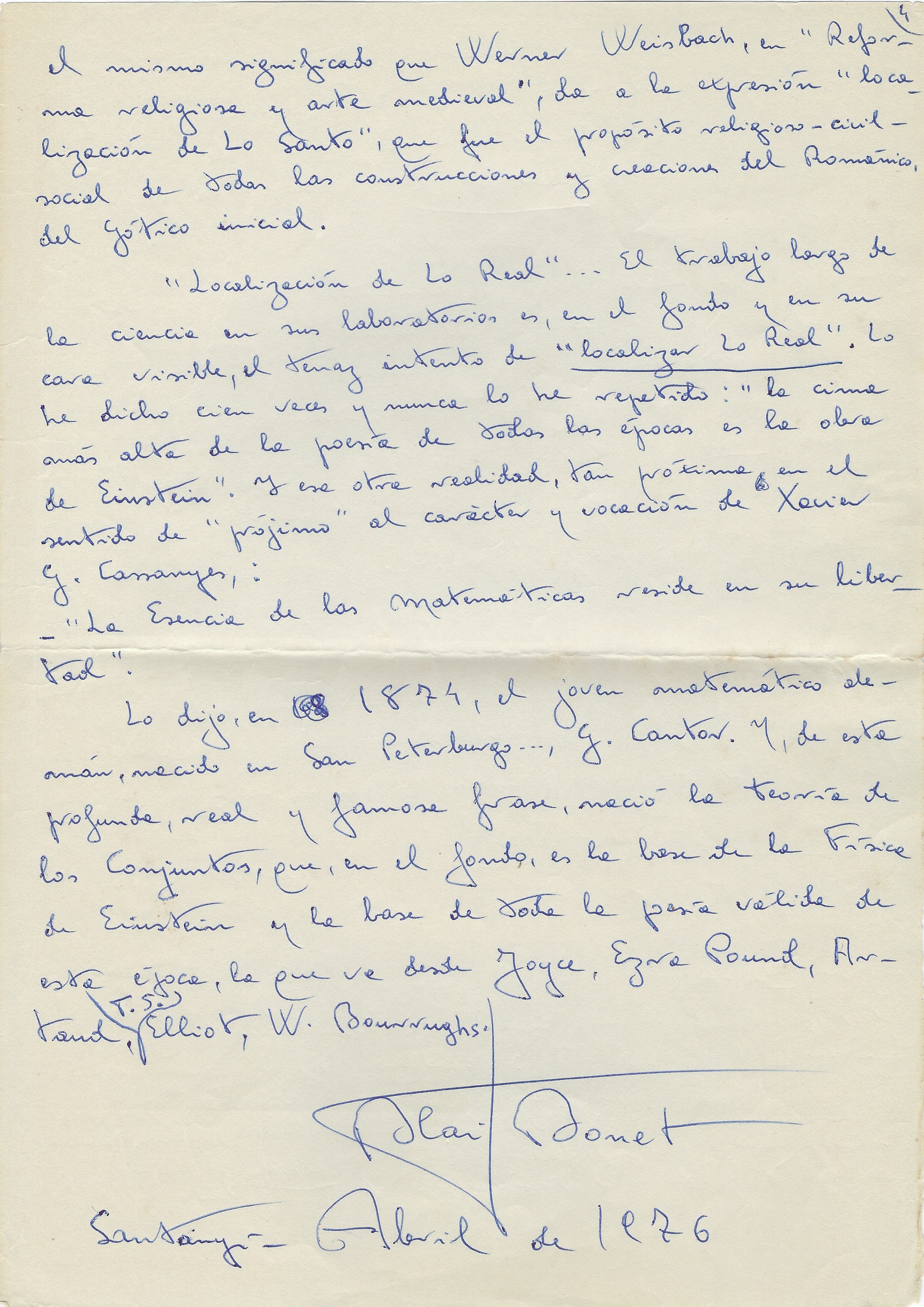 Primera entrevista. BALEARES, 14-02-1970, les meves les meves lectures de l’època, eren els existencialistes, Sartre, Kierkegaard, Camus, i també llegia a Balmes (El Criterio, al Círculo de Lectores, com me va ajudar!); sí era una mica repelent. Doncs quan em feren la pregunta, què era per a mi l’amor, doncs vaig contestar amb tot el sentit més profund i vital: Es maravilloso. Recordant a un filòsof grec que deia que la filosofia naixia de l’admiració i la marevella de la intel.ligència davant la grandiositat de l’Univers.